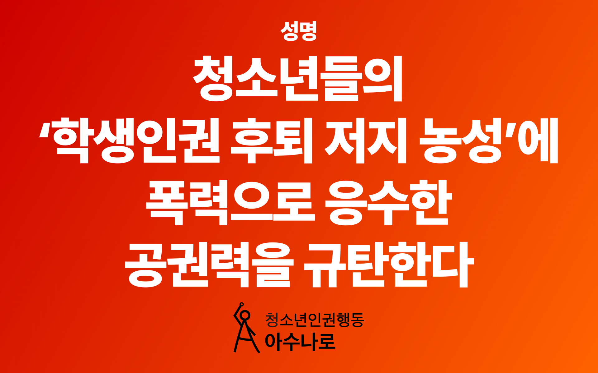 [성명] 청소년들의 ‘학생인권 후퇴 저지 농성’에 폭력으로 응수한 공권력을 규탄한다
